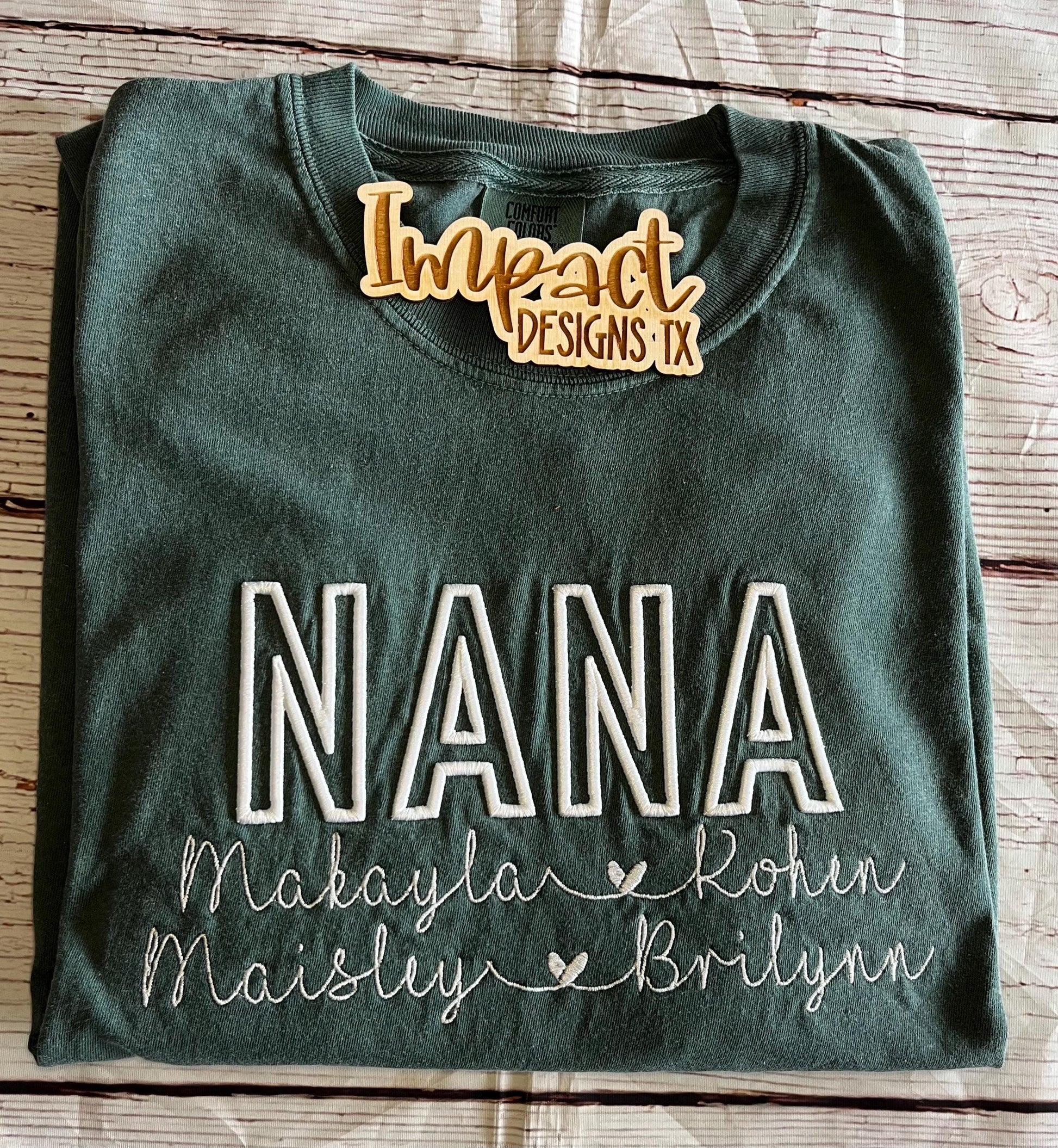 Custom 3D Puff Embroidered Shirt – Mama or Grandma Name Outline Tee
