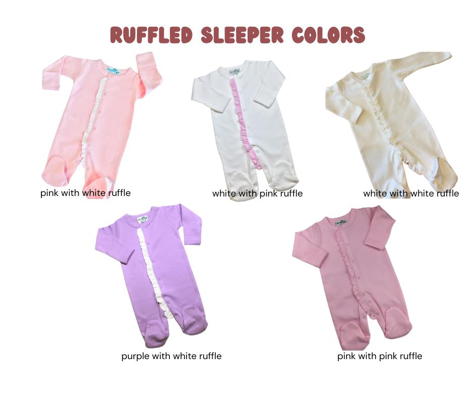 Baby Girl Infant Footie Sleepers with Ruffle make a GREAT going home outfit, birth announcement or baby shower gift!!