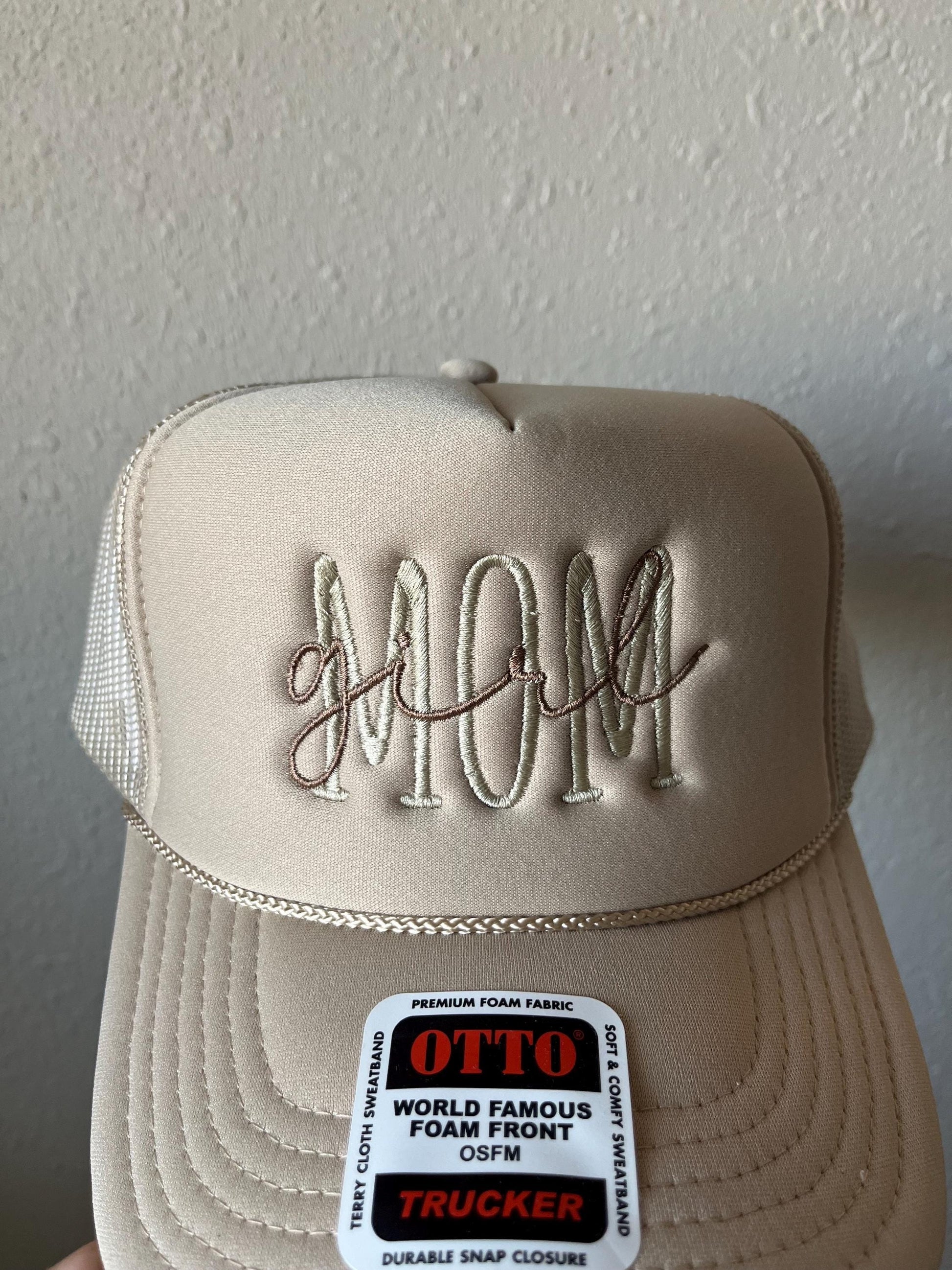 PLEASE READ Otto brand trucker hats (high crown style) embroidered with boy mom or girl mom just as pictured. If you would like a different hat or thread color, please add to personalization.