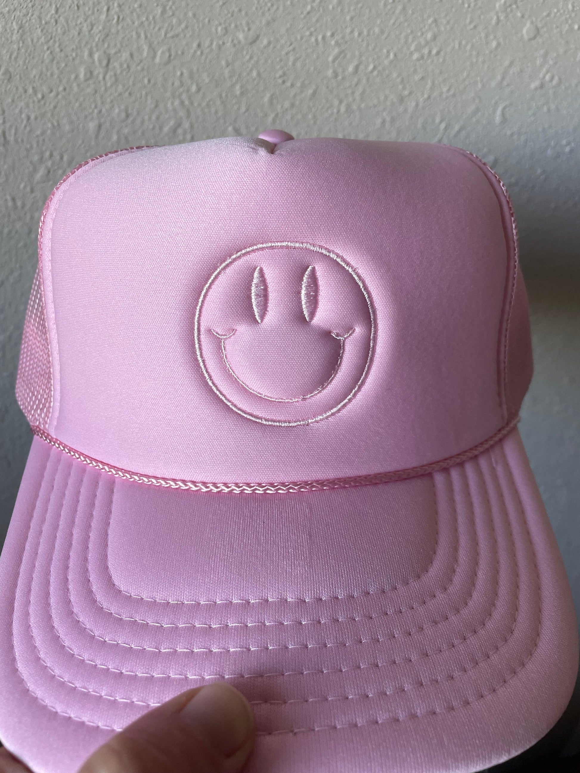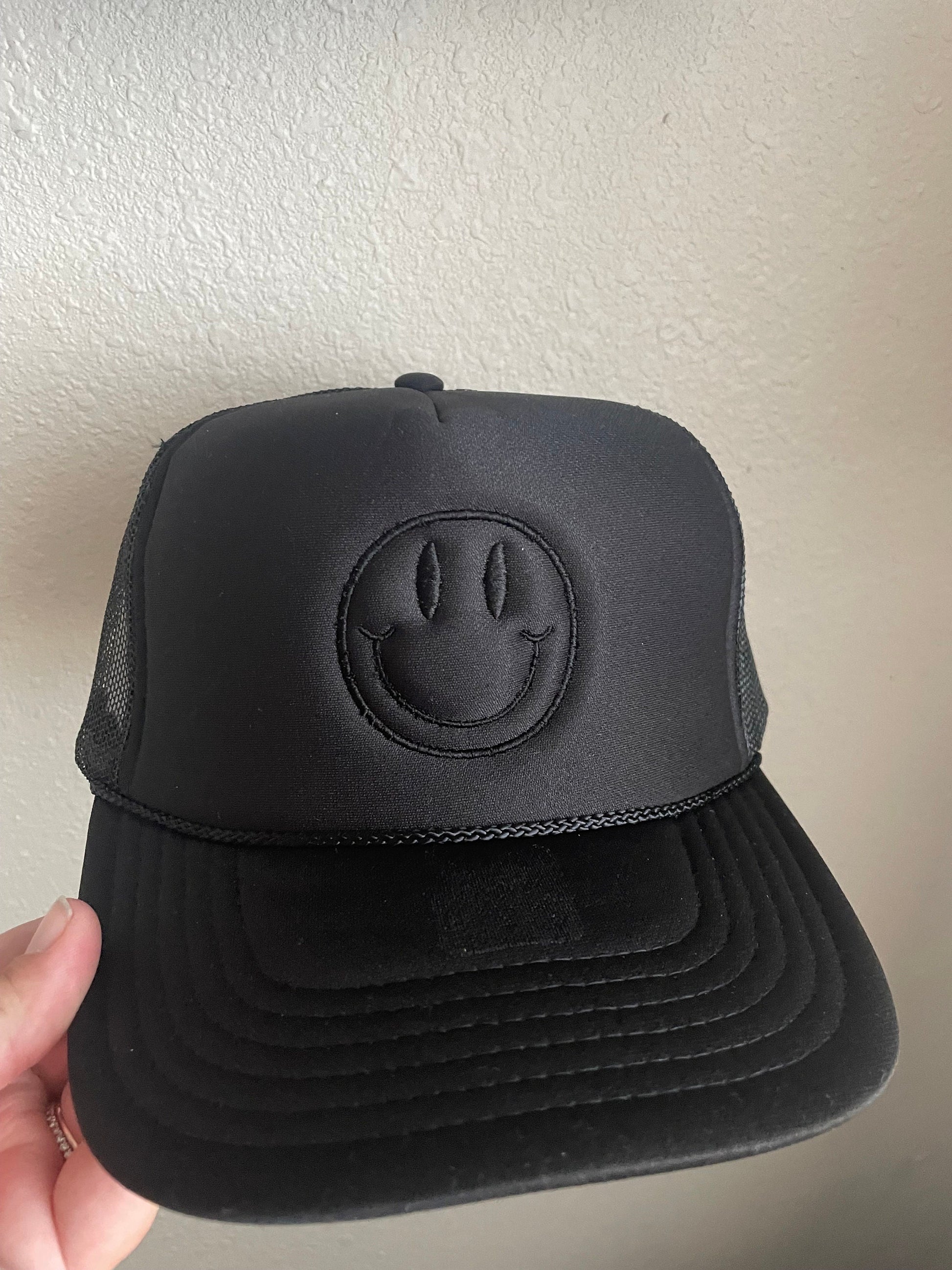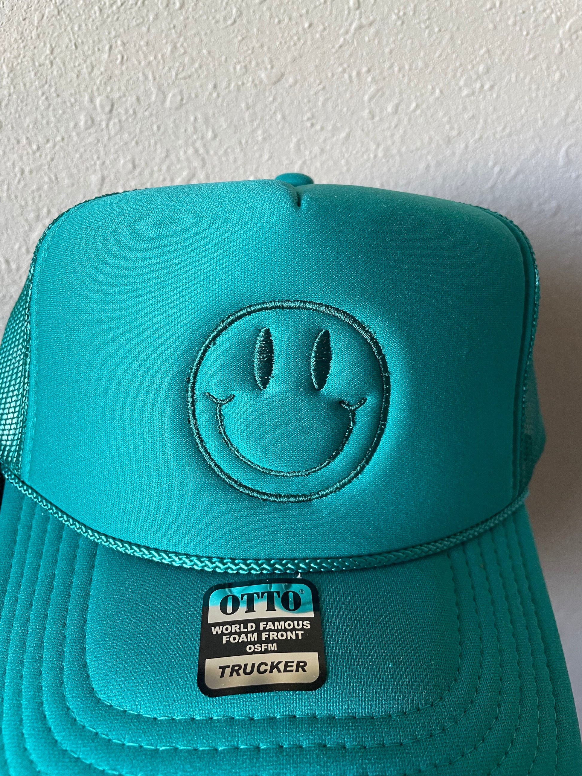 PLEASE READ Otto brand trucker hats embroidered with simple smiley face just as pictured or SUN smiley (beige only). One size fits most and hats have an adjustable snap back.