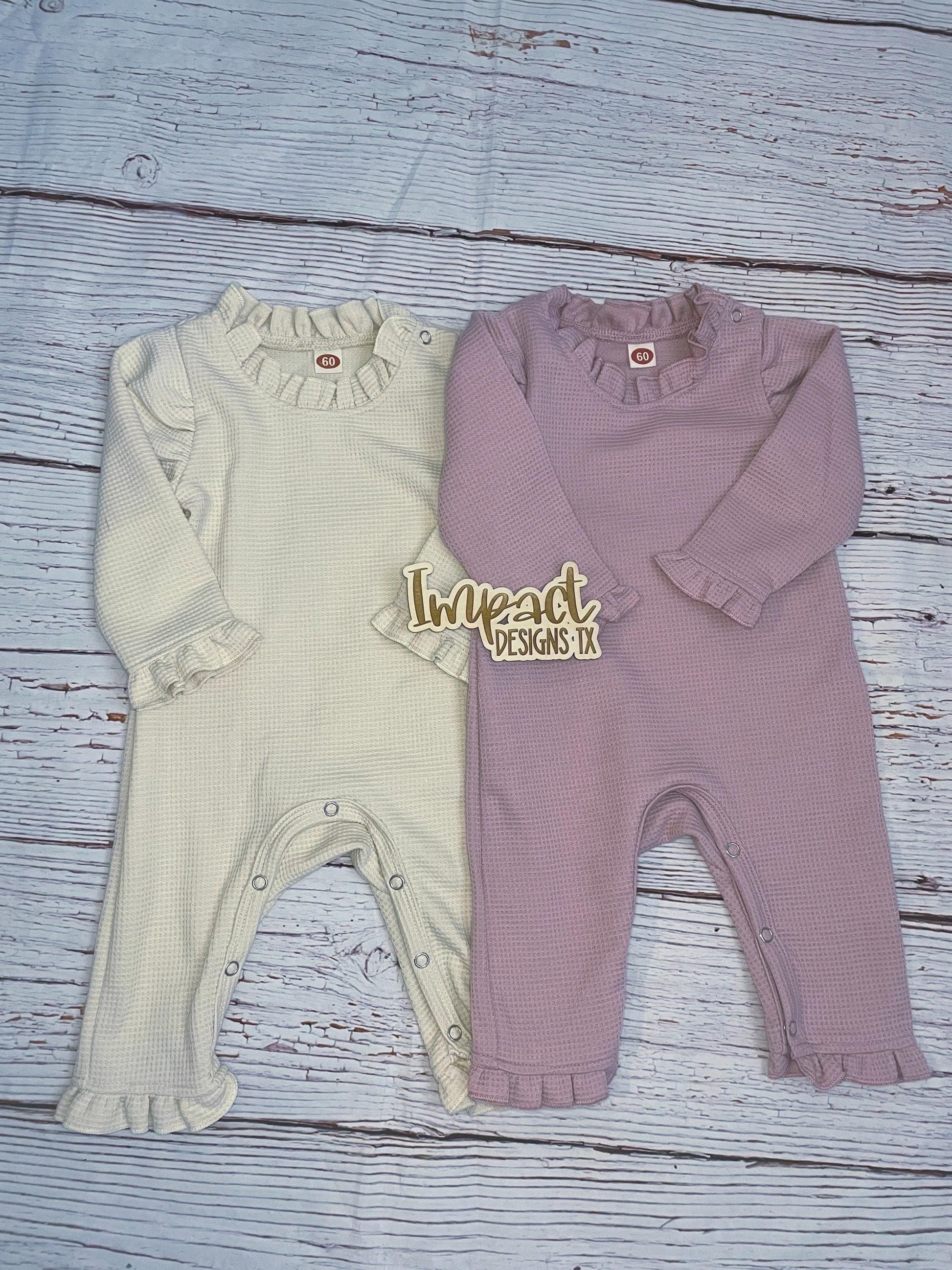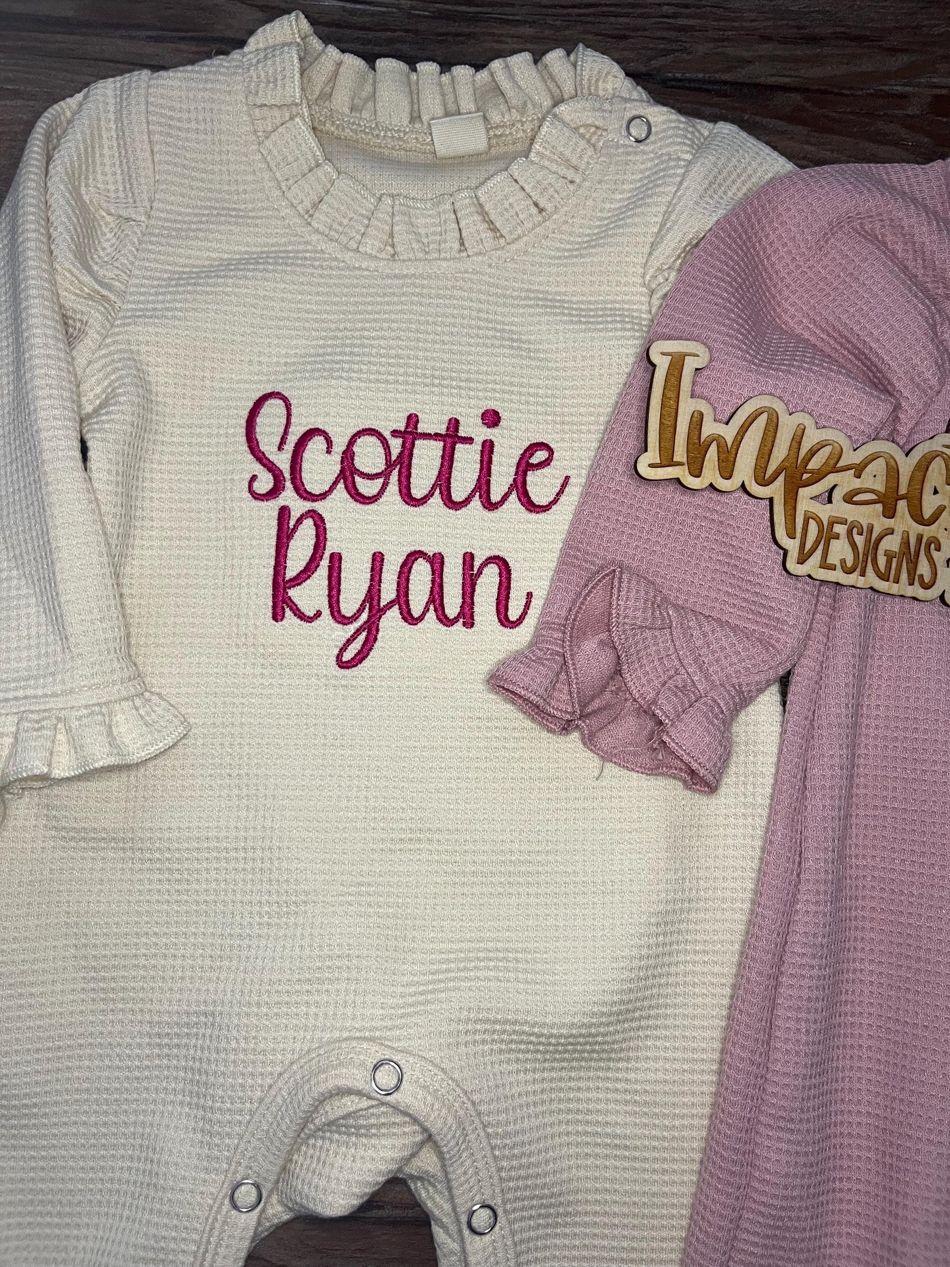 These long sleeve ruffle rompers are perfect for any occasion! Give the perfect customized gift with our embroidered ruffle rompers! Perfect for baby showers, birthdays or any other occasion. These come custom embroidered with the name or monogram of your choice. Runs slightly big.