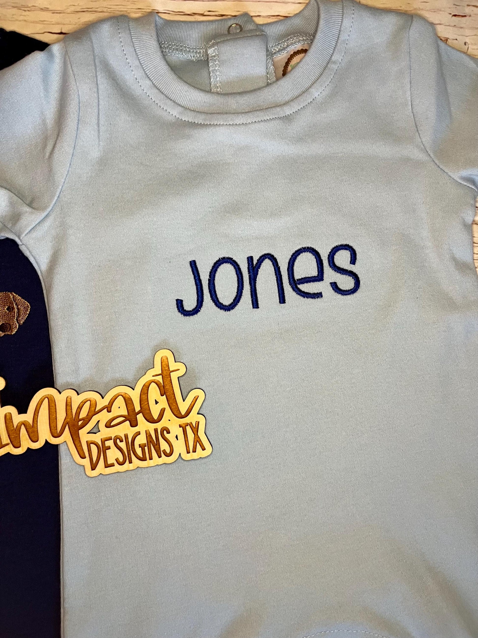 Add a special touch to your little one’s wardrobe with our Custom Embroidered Baby Rompers! These adorable, soft cotton onesies come personalized with your baby’s name and can have a motif added! Perfect for everyday wear, milestone photos, or as a thoughtful baby shower or newborn gift.