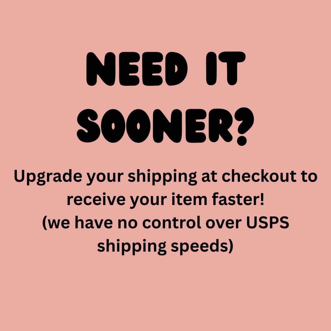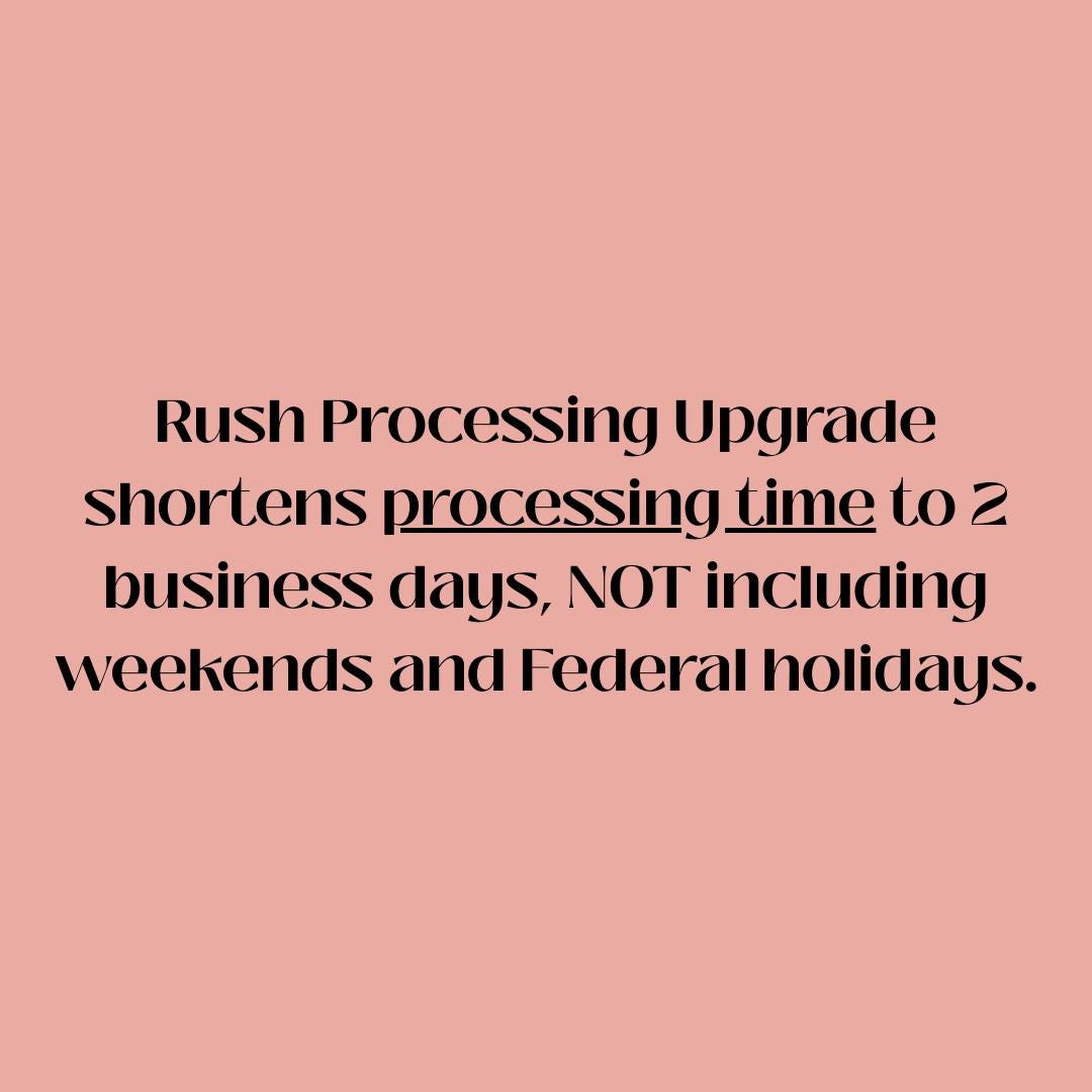 Add this if you want your order to process within 2 business days rather than stated time frame. Please note that this is time for seller to SHIP, not delivery by postal service.